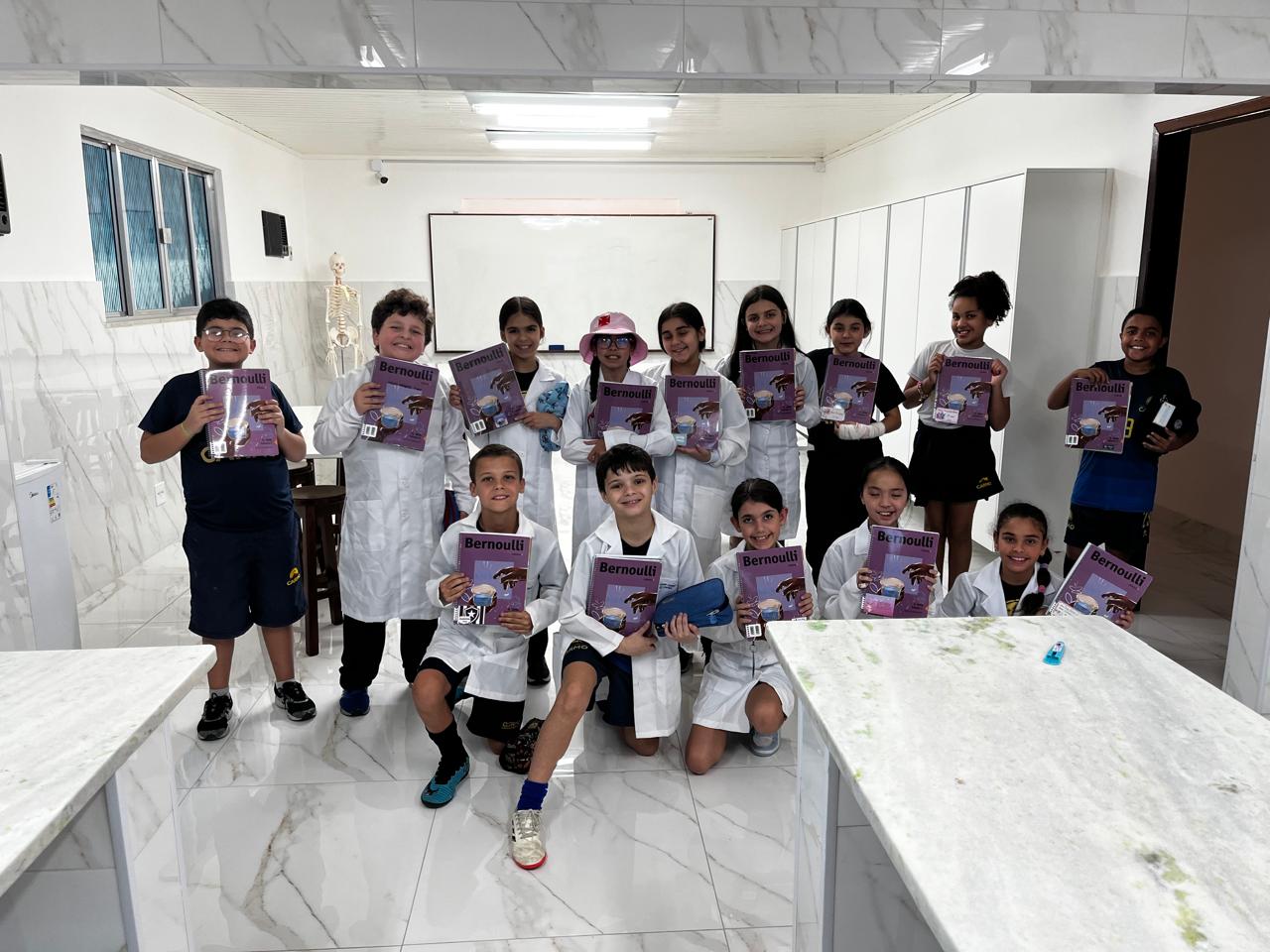 Hoje a turma do 4° ano teve uma aula especial no laboratório! 🔬✨